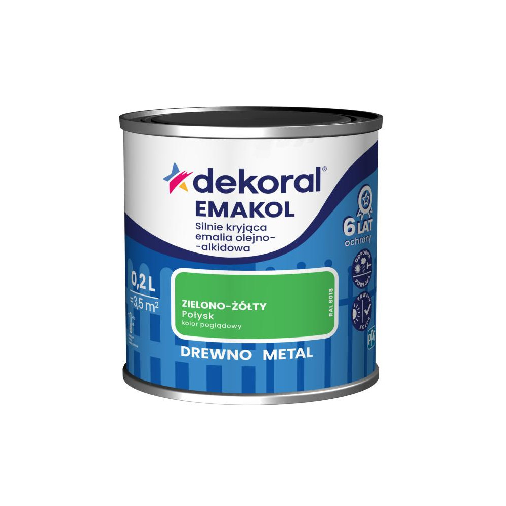 Chcesz dodać odważny, energetyczny akcent do swojego projektu? Emalia Dekoral Emakol Strong 0,2L w żywym kolorze Zielony-Żółty to idealne rozwiązanie! To wysokiej jakości farba ftalowa (olejna) w małej, ekonomicznej puszce 200 ml, stworzona z myślą o drobnych renowacjach, pracach DIY i zaprawkach.